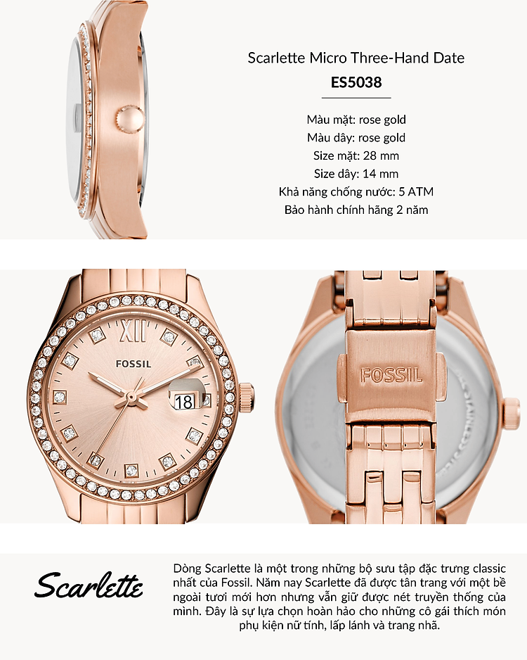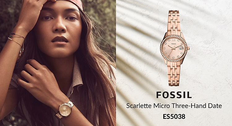 Đồng hồ nữ Fossil Scarlette Micro Three-Hand Date thép không gỉ ES5038 - rose gold