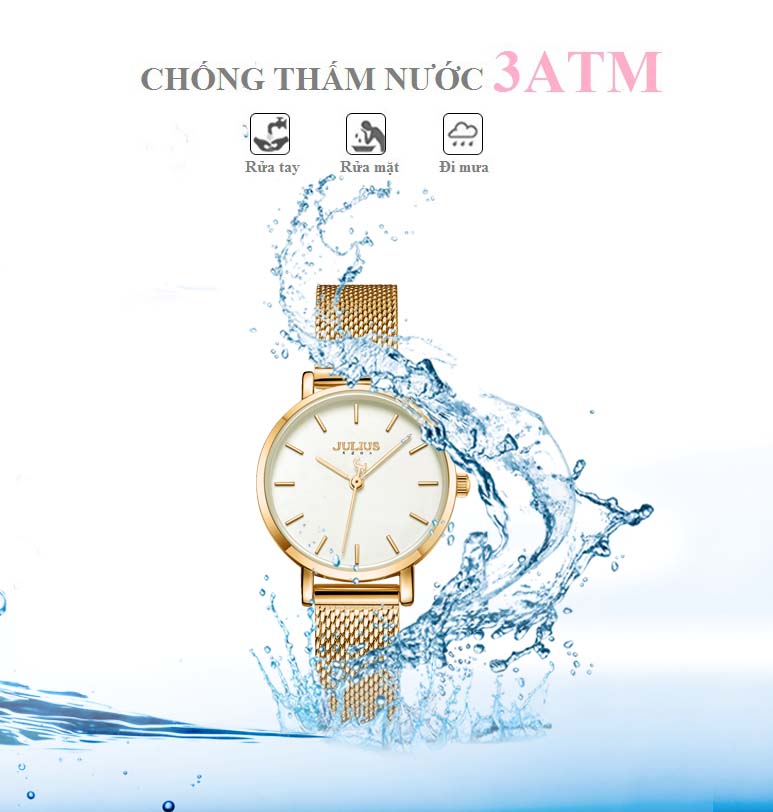 Khả năng chịu nước: Chống thấm nước 3ATM (30m) có thể đi mưa, rửa tay, rửa mặt. Tránh tiếp xúc với môi trường hóa chất như giặt đồ, tấm gội.