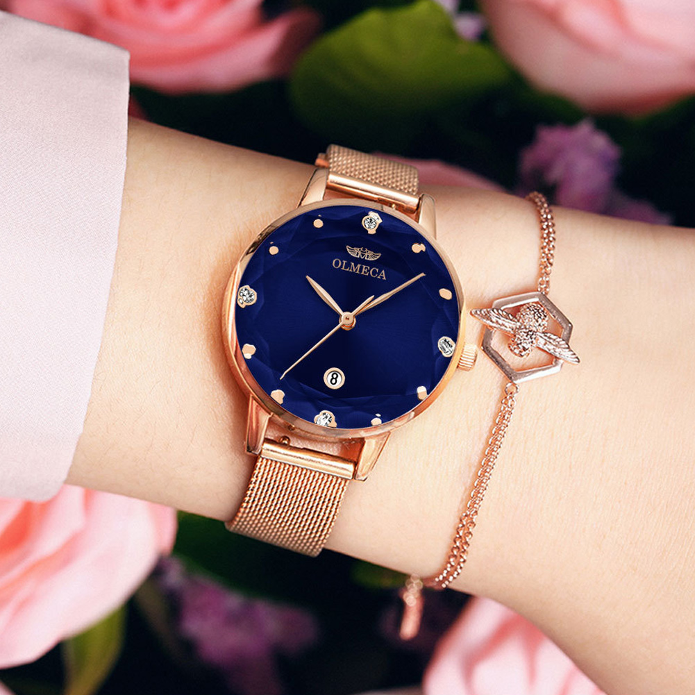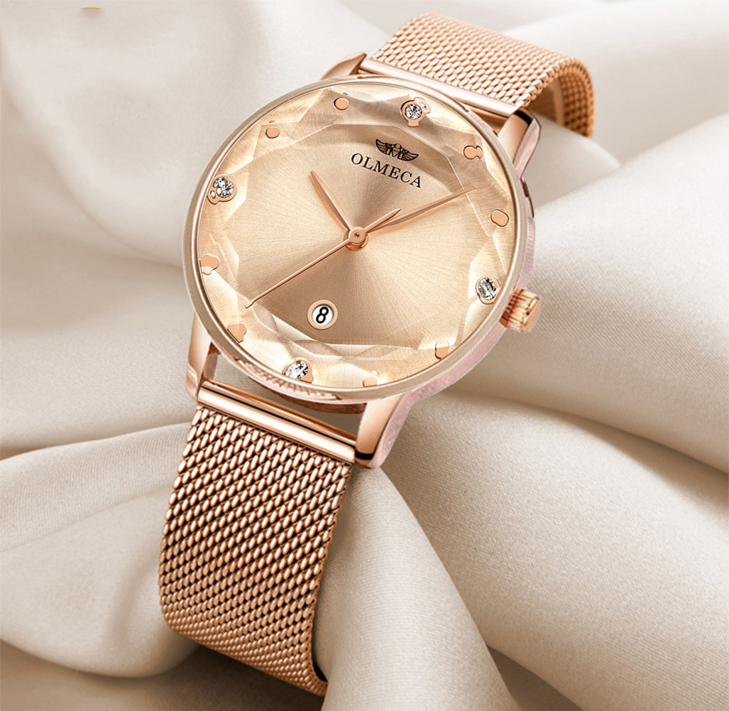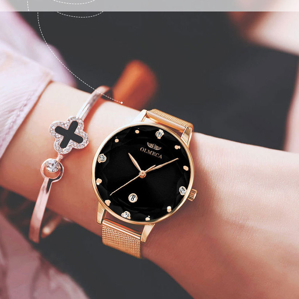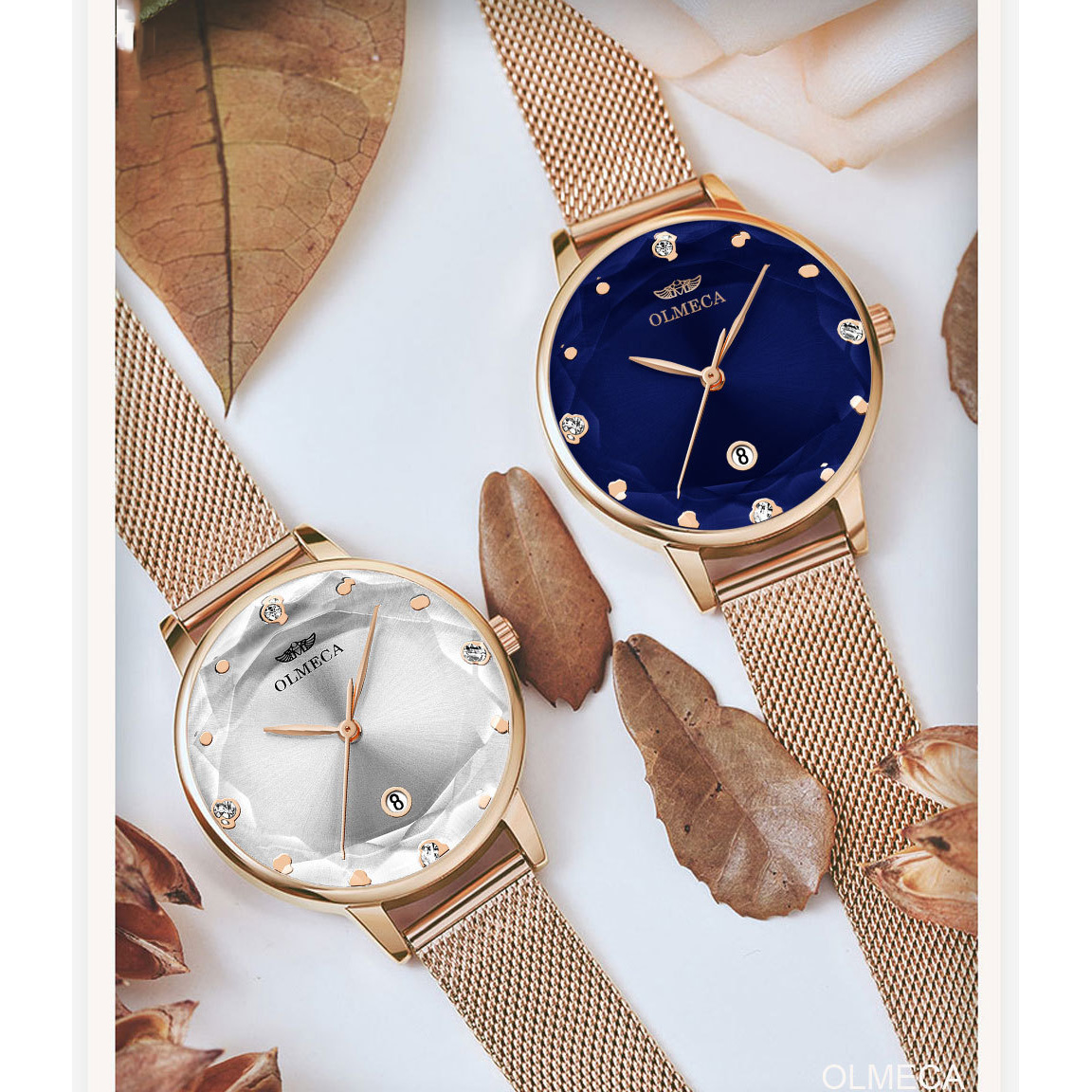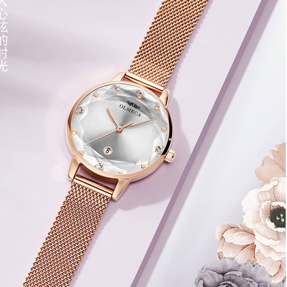Đồng Hồ Nữ Olmeca O888 Mặt 3D Dây Thép Mành Cao Cấp