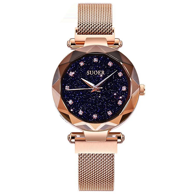 Đồng Hồ Nữ Suoer SU6081 Dây Titanium Siêu Nhẹ - Khóa Hít Nam Châm Sành Điệu - Mặt Kim Tuyến 3D Đính Kim Cương Nhân Tạo Sang Chảnh - Đồng Hồ Thời Trang Nữ Sang Trọng