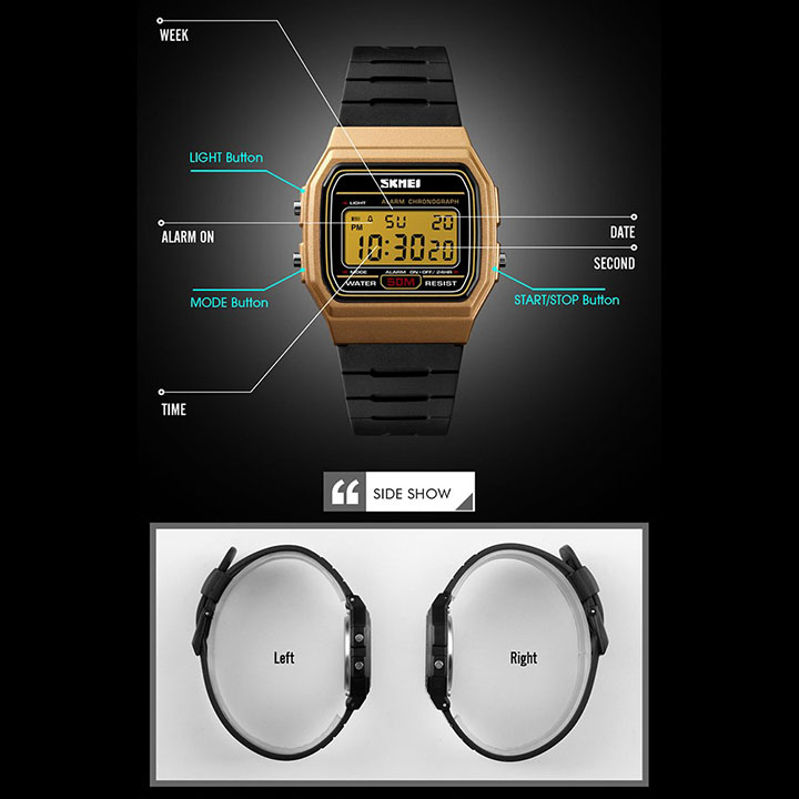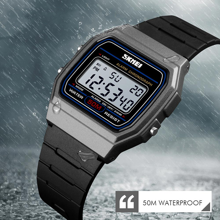 Với khả năng chống thấm nước 3ATM, có thể dùng tốt trong môi trường nước như đi mưa, rửa tay,… cho bạn yên tâm tin dùng. Thiết kế mặt chữ nhật cách điệu cho giao diện độc đáo và tinh tế, thu hút mọi ánh nhìn. Đồng hồ SKMEI 1412 sẽ là món phụ kiện thời trang đắc lực thể hiện phong cách sang trọng, thanh lịch của chính mình.
