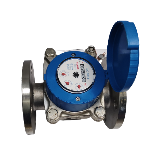Đồng hồ nước komax thân inox DN125 nối bích sản xuất theo tiêu chuẩn BS hay PN16 với tiêu chuẩn ISO 4064 được Việt nam phê chuẩn, lưu lượng trung bình 100m3/h và lưu lượng maximum đạt tới 200m3/h Qmin = 20m3/h, kích thước đường ống 125mm, dài 250mm rộng 250mm cao 295mm lắp đặt theo phương nằm ngang theo chiều của đường ống.