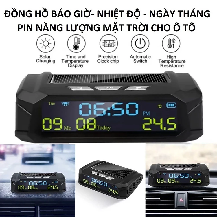 Đồng Hồ Ô Tô 3in1 Mẫu Mới: Báo Giờ, Ngày Tháng, Nhiệt Độ - Màn Hình LED Đa Năng Cực Tiện