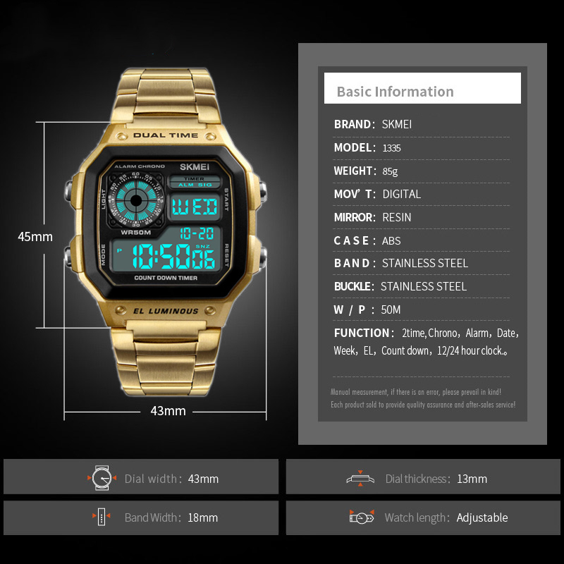 Đồng Hồ Thể Thao Nam Dây Kim Loại Skmei 1335SKM  - Màu Vàng