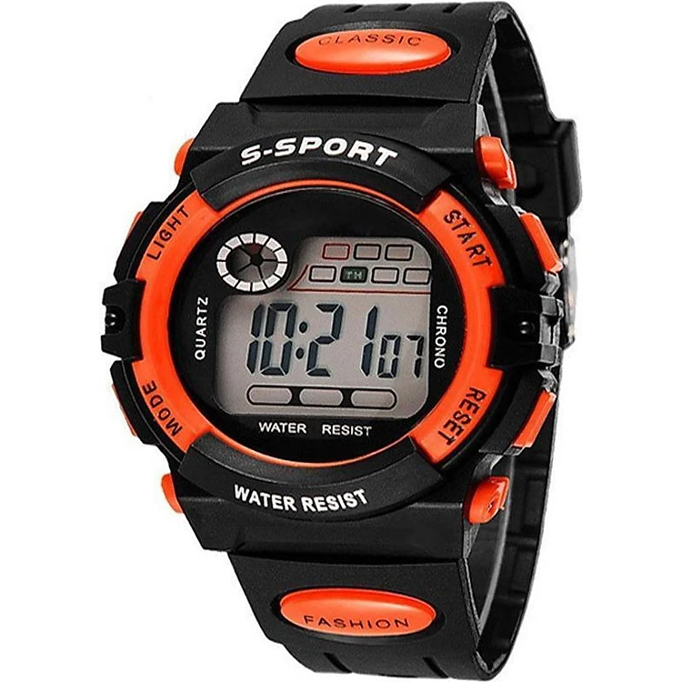 Đồng hồ thể thao trẻ em được thiết kế tình tế, mang vẻ ngoài đậm chất thể thao, mạnh mẽ. Mặt kính được làm từ mặt kính khoáng hữu cơ trong suốt, chống giãn nở, chống va đập và hạn chế trầy xước. Đồng hồ mặt tròn với nhiều chi tiết được làm tinh tế, độc đáo, đa chức năng sử dụng gồm hiển thì giờ chính xác, ngày, tháng, đèn led, báo thức, hẹn giờ...