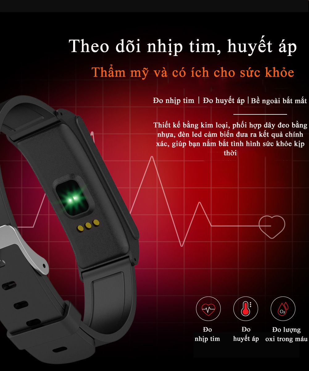 Đồng hồ thông minh C25 Vòng tay thông minh, thiết bị theo dõi sức khỏe chống  thấm nước đo nhịp tim huyết áp bước chạy khoảng cách và kết nối điện thoại - Hàng chính hãng