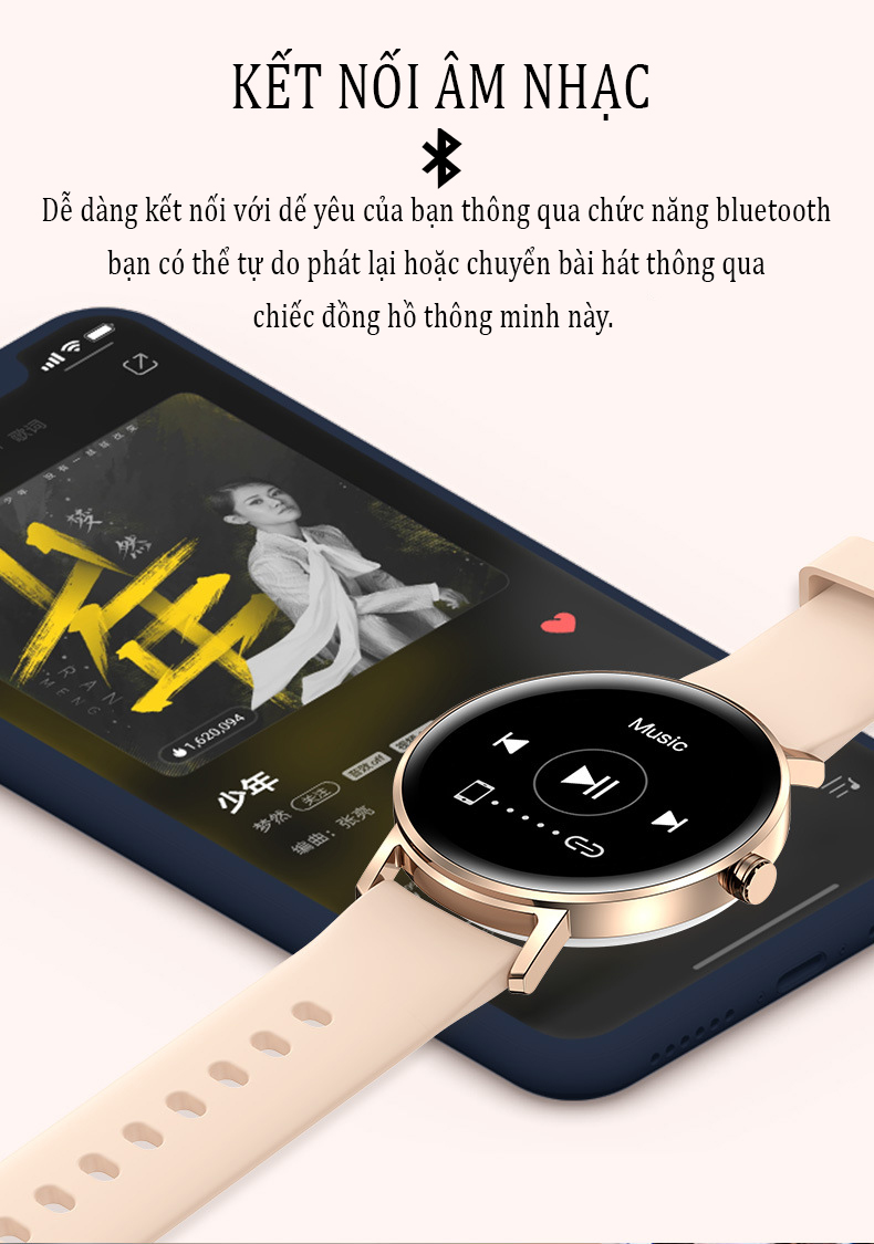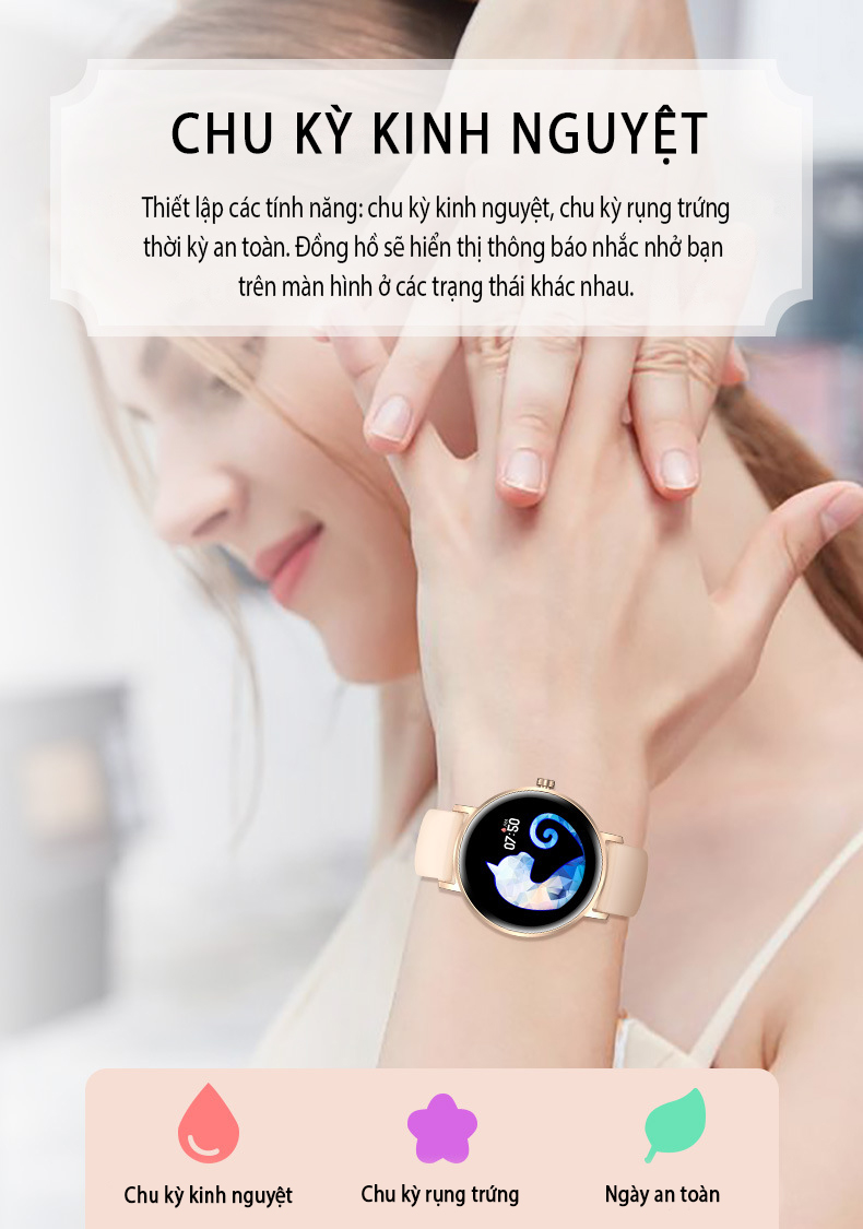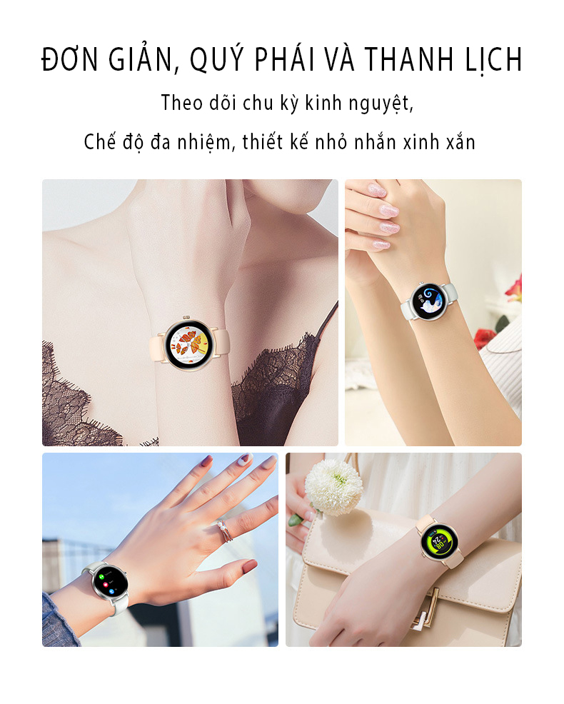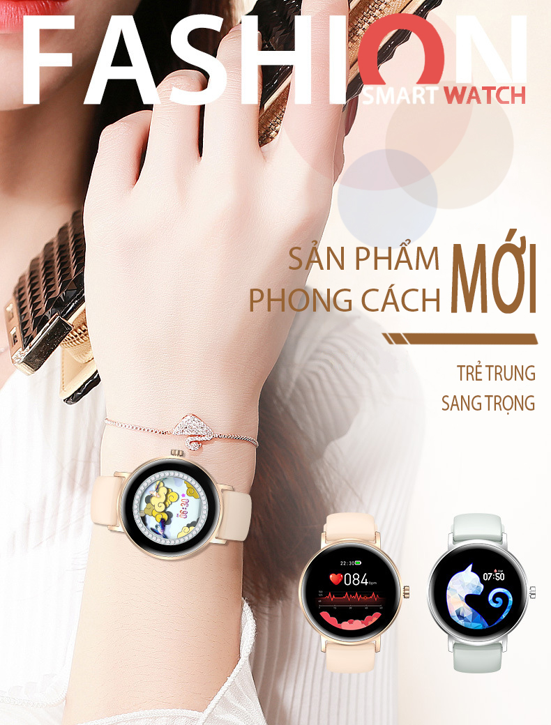 Đồng Hồ Thông Minh Nữ AMA Watch S27 Thời trang Kết nối Bluetooth Theo dõi Sức khỏe Vận động Màn hình tròn Hàng chính hãng