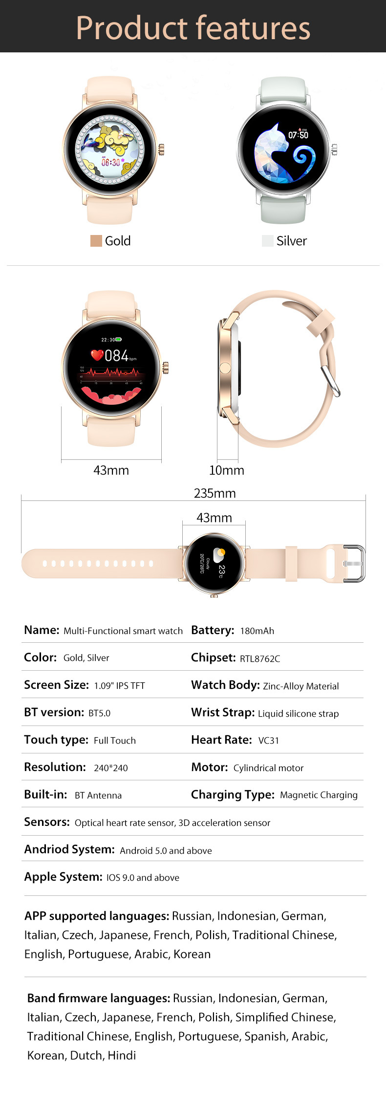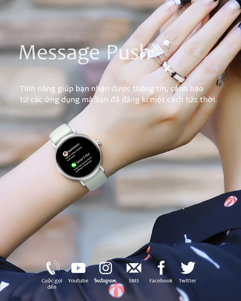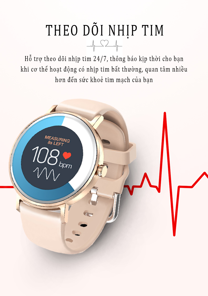 Đồng Hồ Thông Minh Nữ AMA Watch S27 Thời trang Kết nối Bluetooth Theo dõi Sức khỏe Vận động Màn hình tròn Hàng chính hãng
