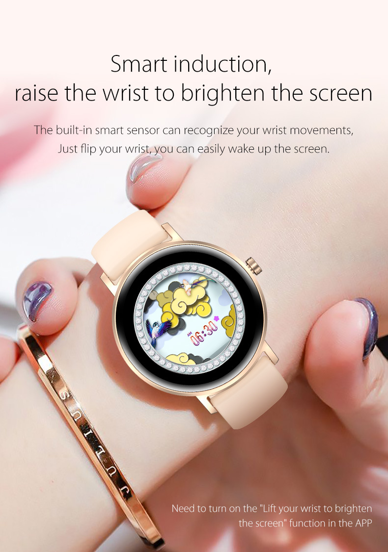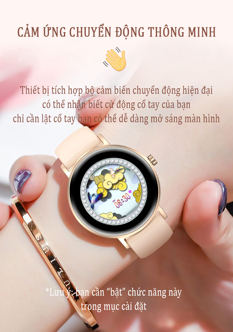 dụng đeo tay và màn hình sáng được bật, công tắc màn hình sáng và cổ tay có thể được bật và có thể xoay hoặc nâng cổ tay trong thời gian chờ Màn hình sáng