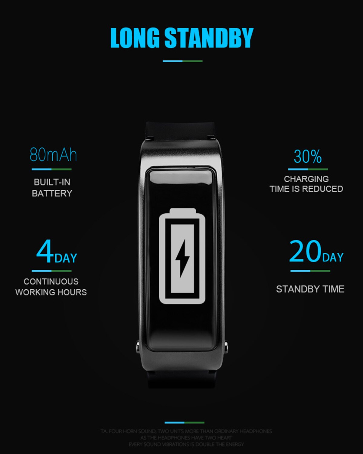 Tai nghe bluetooth mỏng kết hợp với vòng đeo tay thông minh, ID người gọi giúp bạn giao tiếp hiệu quả mọi lúc mọi nơi.