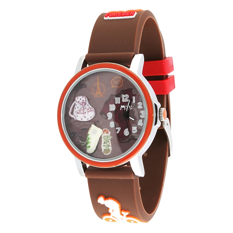 Đồng Hồ Trẻ Em Dây Cao Su Mini MN958 - Nâu có dây đeo được gia công từ cao su cao cấp nên có độ bền đẹp theo thời gian, linh kiện nhập tự Nhật Bản nên bạn hoàn toàn có thể tin tưởng vào chất lượng khi sử dụng. Đồng hồ có mặt tròn, kiểu hiển thị giờ cổ điển sẽ giúp bé dễ dàng quan sát giờ giấc. Đặc biệt, các hoa văn bên trong được nặng tay tỉ mỉ từ đất sét polymer, tạo vẻ sống động, nhiều màu sắc cho sản phẩm, khiến bé thêm thích thú.