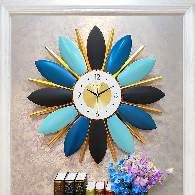 Đồng hồ treo đồng hồ lá hoa trang trí phòng khách hiện đại tối giản thời trang sáng tạo sang trọng đồng hồ treo tường phong cách châu Âu