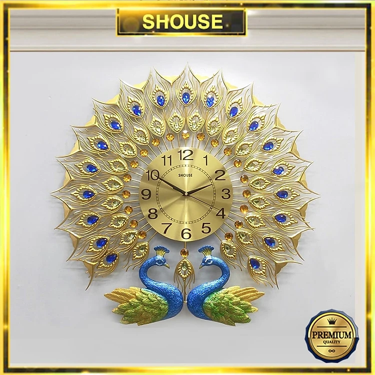 Đồng Hồ Treo Tường Hai Con Chim Công Khổng Tước Kim Trôi DTN009 Nghệ Thuật Cao Cấp Shouse hiện đại 3D kích cỡ lớn đẹp treo phòng khách