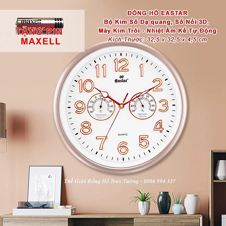 - Đồng hồ Kim trôi có Dạ Quang và Nhiệt ẩm kế Cơ hình tròn kiểu dáng Hiện đại.