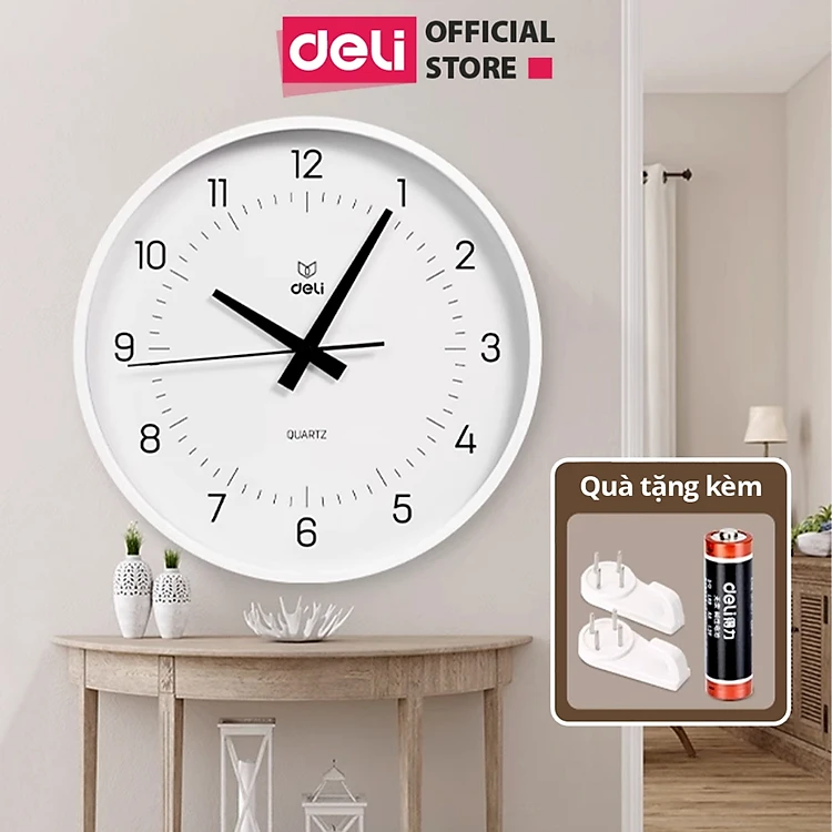 Đồng hồ treo tường kim trôi không ồn minimalist phong cách tối giản trang trí phòng khách Bảo hành 12 tháng Deli