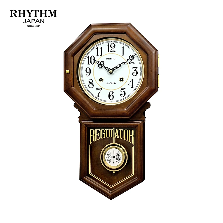 Đồng hồ treo tường Nhật Bản Rhythm CMJ586NR06 dùng pin, kích thước 24.0 x 54.0 x 11.7cm, vỏ gỗ, điểm giờ bằng gong.