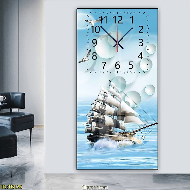 Đồng Hồ Treo Tường Tráng Gương Thuyền Và Biển Đẹp - Tranh Đồng Hồ Trang Trí Phòng Khách, Phòng Làm Việc