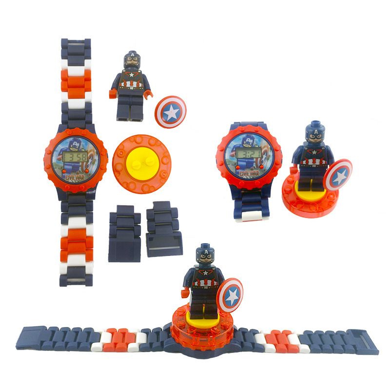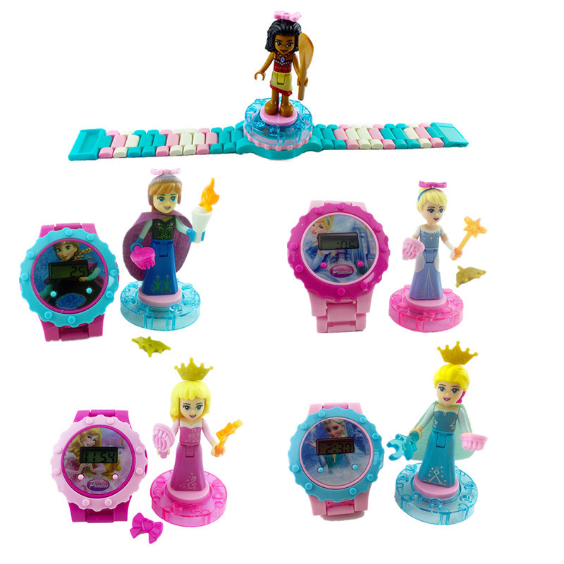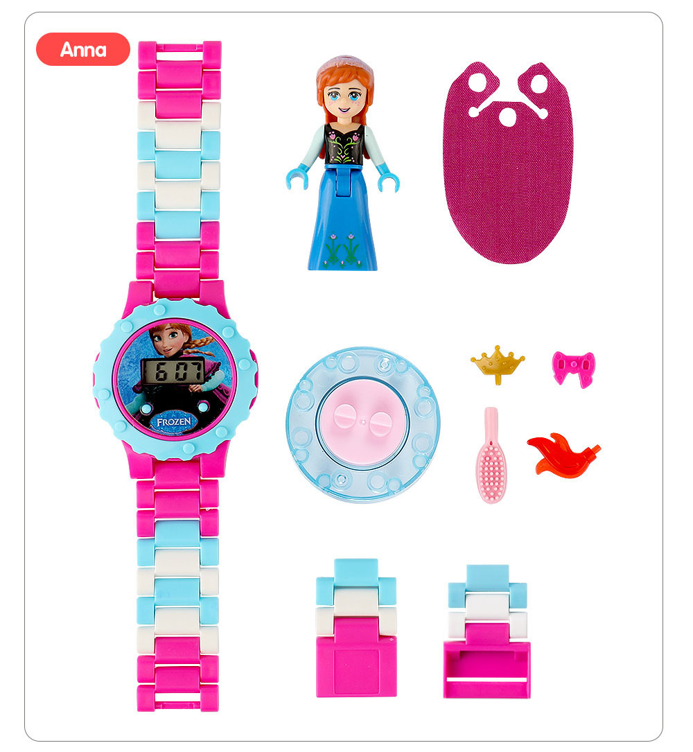 Đồng hồ điện tử có tích hợp thêm một đế xoay dùng để gắn nhân vật hoạt hình yêu thích của bé.