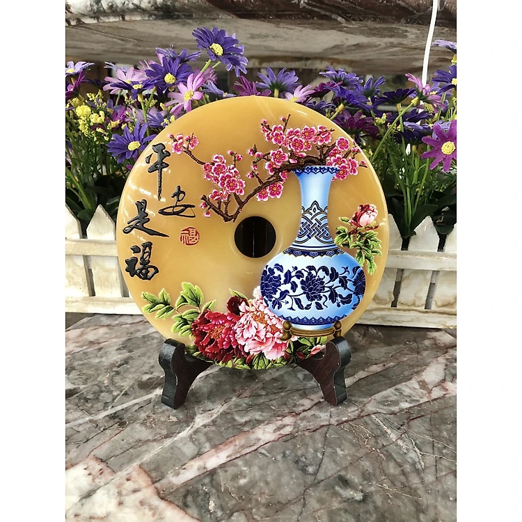 Đồng tiền đồng điếu may mắn phong thủy vẽ tranh chiêu nạp tài lộc đá ngọc hoàng long - Đường kính 16 cm