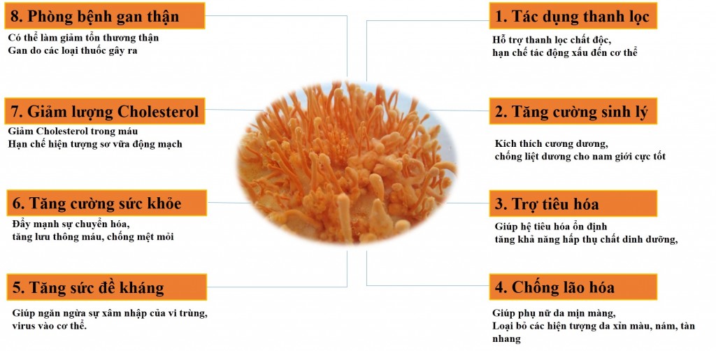 Đông trùng hạ thảo Thiên Ân yến HT đặc biệt tốt cho người già, người mới ốm dậy, người thường xuyên làm việc với cường độ cao và người bị căng thẳng, stress do áp lực công việc. ăng cường sức khỏe, tăng sức đề kháng cho cơ thể. -Tăng cường hệ hô hấp. Làm chậm quá trình lão hóa, chống lão hóa, hạn chế bệnh tật tuổi già. Làm giảm đường máu, giảm mỡ máu, chống xơ vữa động mạch, điều hòa huyết áp.