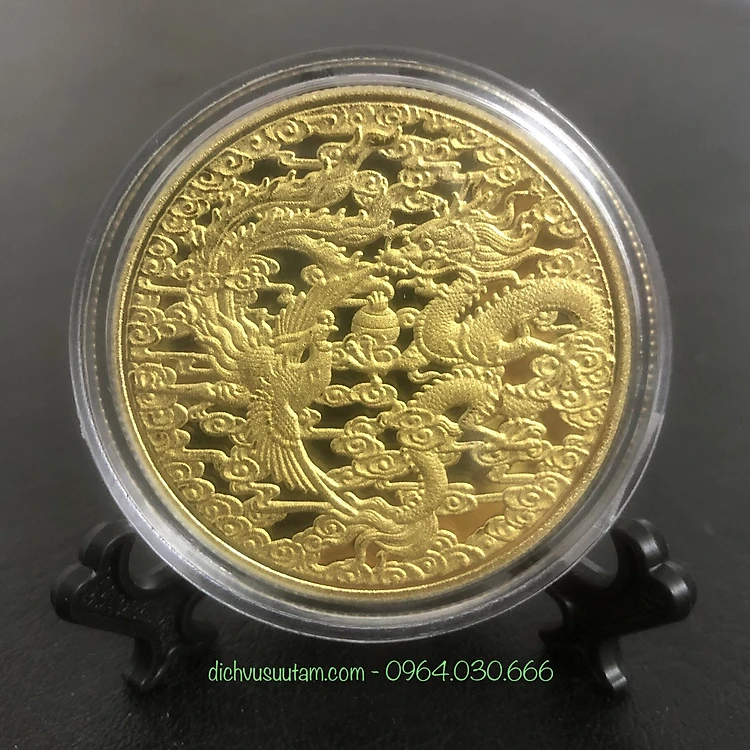 Đồng xu Long Phụng sum vầy ý nghĩa, tặng kèm đế trưng bày xu