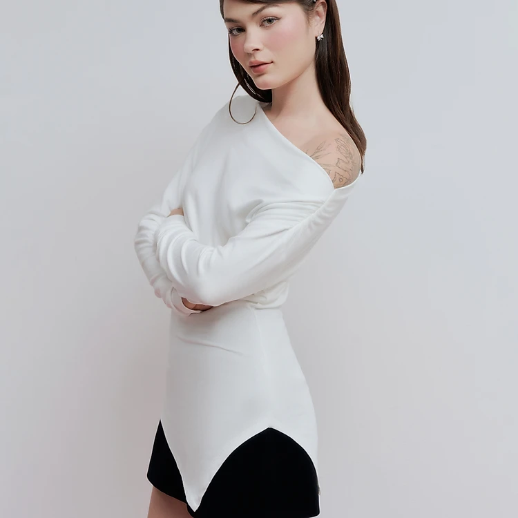 DOTTIE - Áo dài tay lệch vai - Trắng - T1055