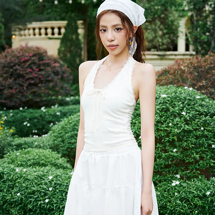 DOTTIE - Áo đính nơ hở lưng - Trắng kem - T1091