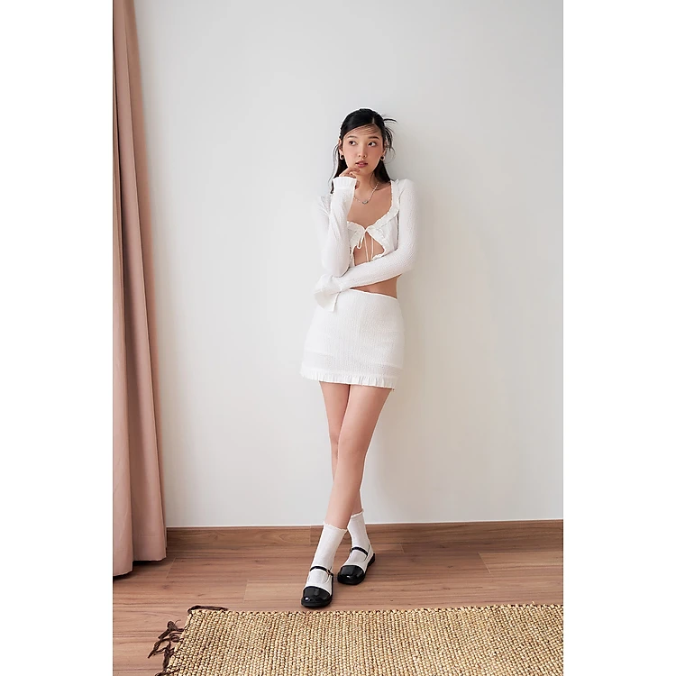DOTTIE - Váy ngắn phối vải - Trắng - S0160