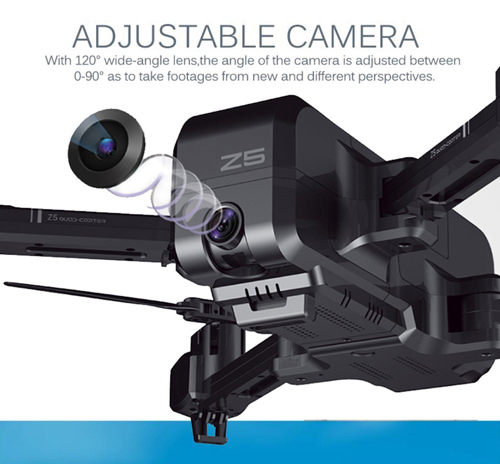 Máy ảnh 1080P của Flycam SJRC Z5 được cải tiến có thể điều chỉnh xoay góc 90 độ với chống rung quang học đáng kinh ngạc để chụp ảnh và video từ trên trời.