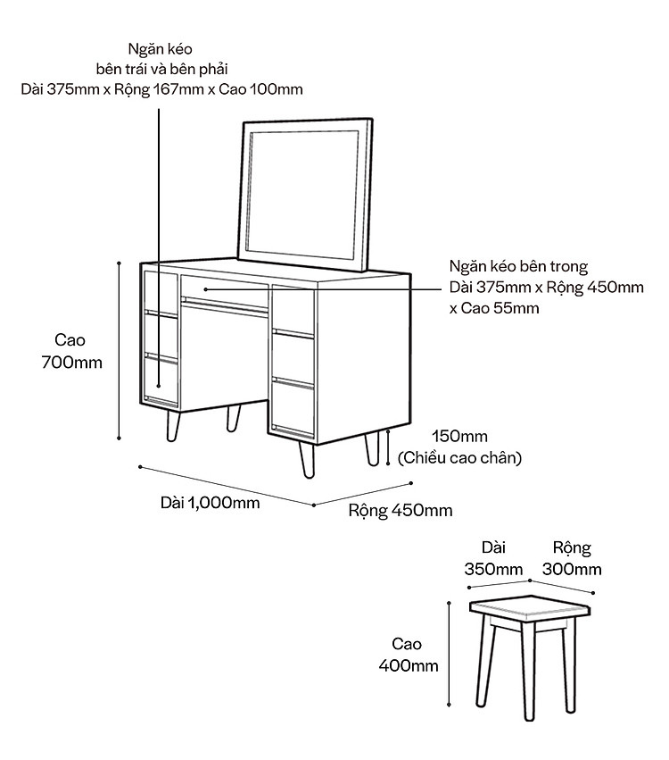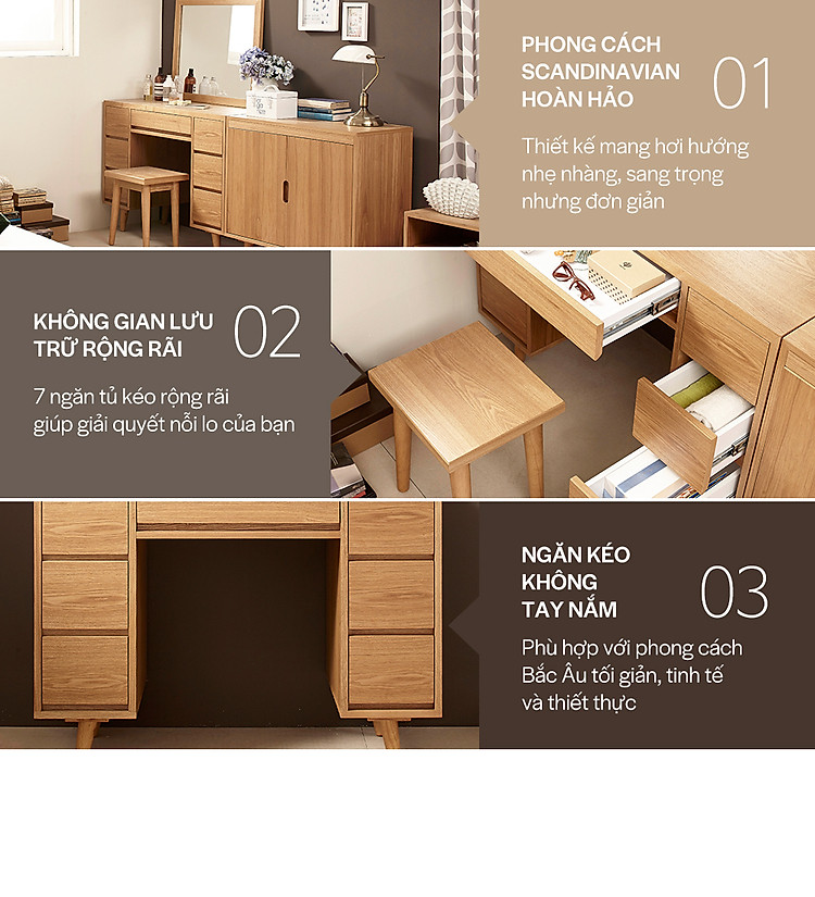 DT001 - BÀN TRANG ĐIỂM KÈM GƯƠNG SCANDINAVIAN