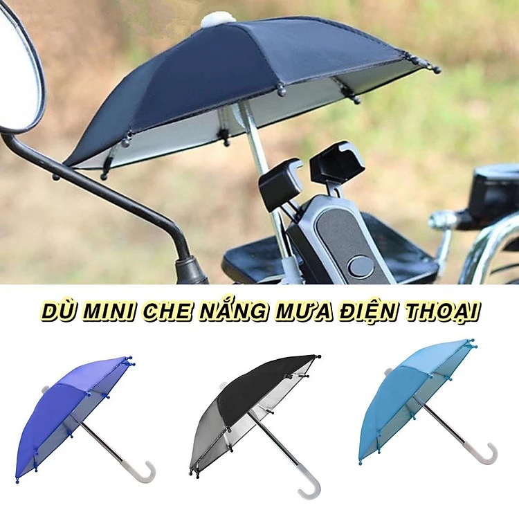 Dù ô mini che nắng mưa cho điện thoại và trang trí gấp xếp gọn gắn vào giá đỡ trên xe máy, ô tô chuyên dụng cho shipper