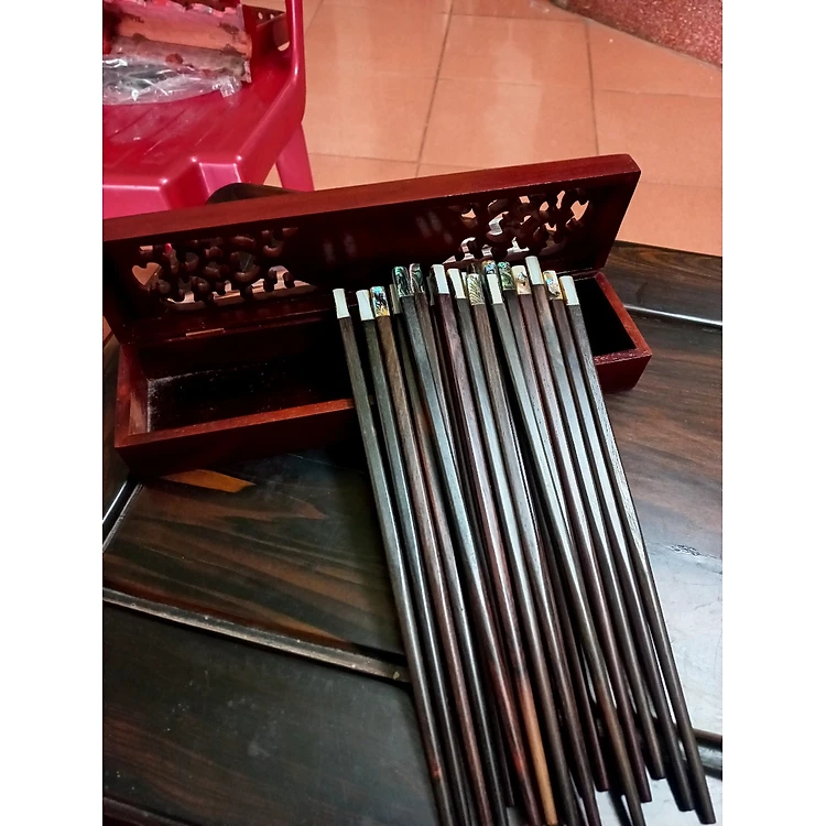 Đũa ăn cao cấp bằng gỗ trắc đen + hộp đựng đũa bằng gỗ hương