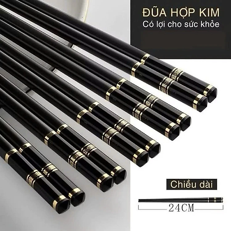 Đũa - Combo 30 đôi đũa khảm vàng - Đũa ăn viền vàng - đũa ăn cơm - đũa ăn đen viền vàng - Hàng chính hãng