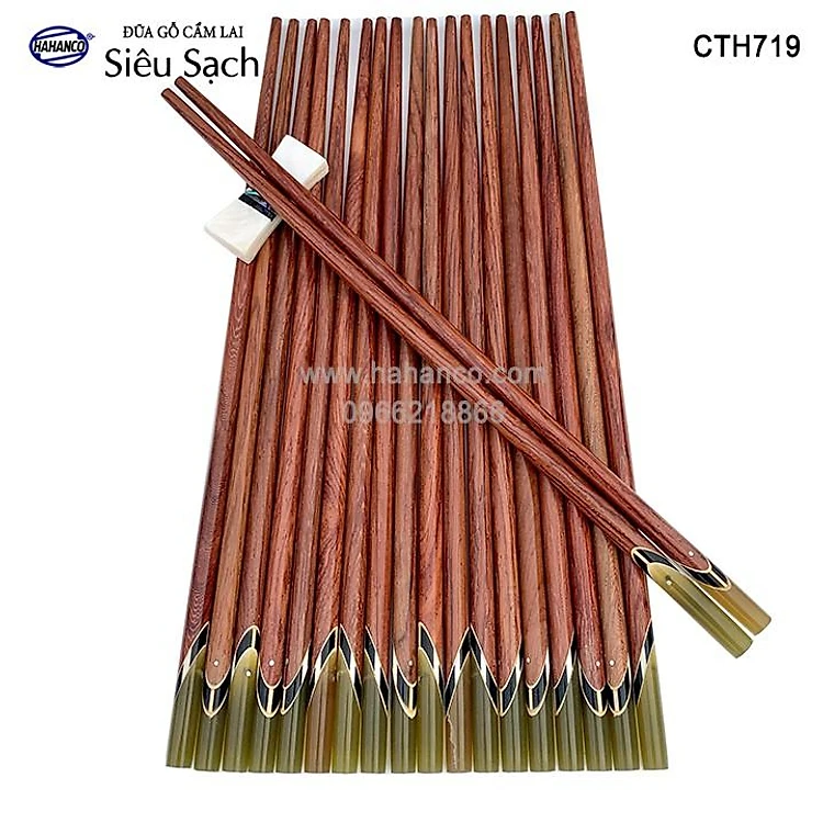 Đũa gỗ Cẩm Lai - Đầu Cẩm thạch chéo một màu (10 đôi/Hộp) CTH719 - Tặng hộp đẹp làm quà biếu