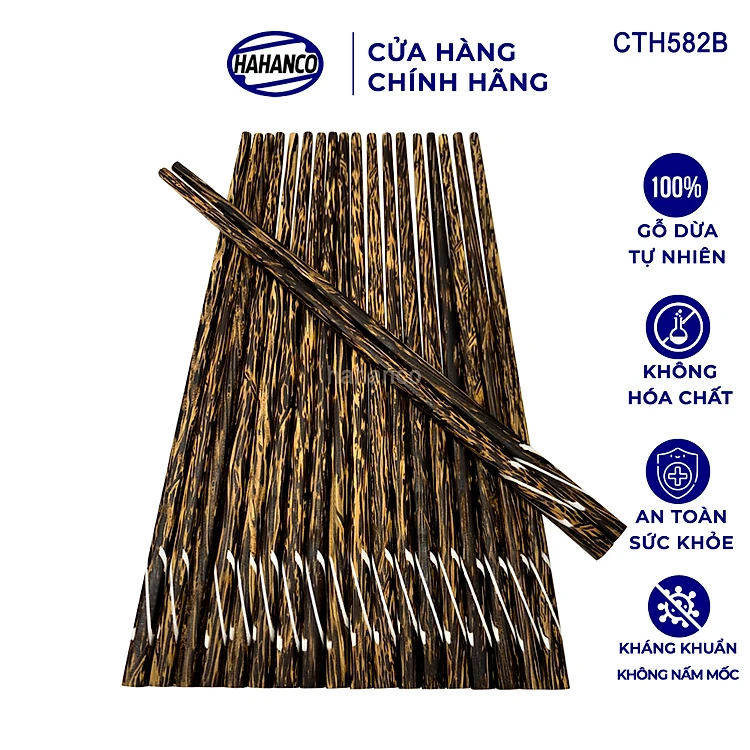 Đũa Gỗ Dừa Đen Khảm Kẻ Chéo HAHANCO An Toàn Đẹp Mắt Dùng Cho Quán Ăn Gia Đình - CTH582B