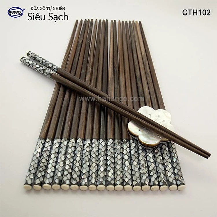 Đũa gỗ Mun Sọc đầu cẩm xà cừ đẹp (10 đôi) CTH755 - Đũa mộc /không nhuộm hóa chất