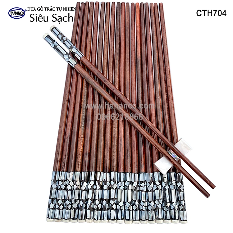 Đũa gỗ Trắc đầu cẩn xà cừ hoa văn thủ công, đẹp mắt (10 đôi) CTH704 - Tặng kèm hộp đẹp làm quà biếu