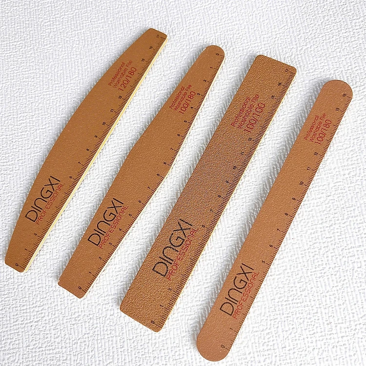 Dũa Nâu Da Bò Cao Cấp Có Kẻ Vạch Loại Dày Nhiều Form Vuông, Thẳng, Bầu, Thoi Dũa DINGXI Có Thước Đo Làm Nail Chuyên Nghiệp, Độ Nhám Tốt Dũa Thường