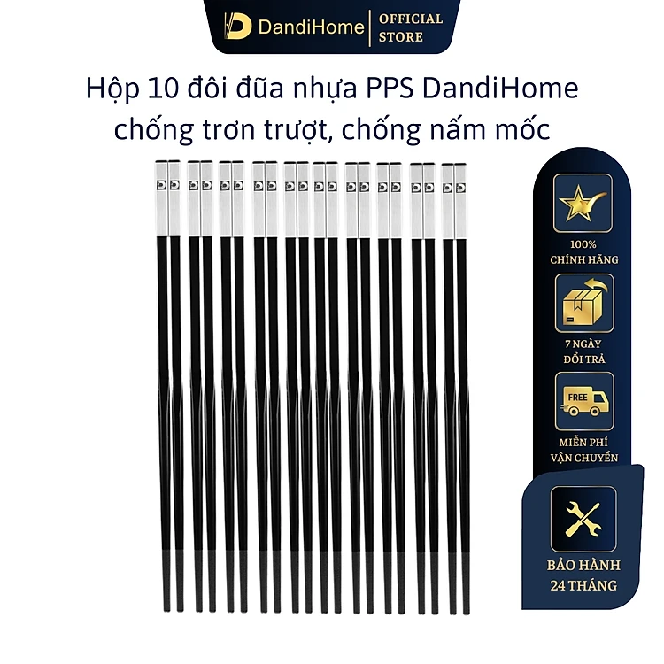 Đũa nhựa PPS sợi thủy tinh DandiHome kết hợp Inox 304 DandiHome cao cấp, chống trượt, chống nấm mốc