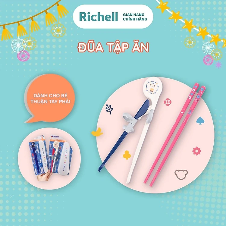 Đũa tập ăn xỏ ngón cho bé tập gắp Richell Nhật Bản | Baby