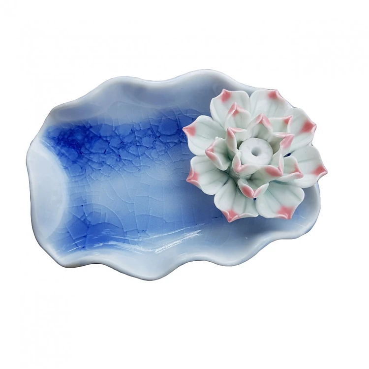 Dụng cụ đốt nụ trầm và cắm nhang trầm đĩa đính hoa gốm cao cấp xuất Nhật DDT03