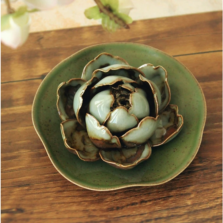 Dụng cụ đốt trầm hoa mẫu đơn bằng gốm kèm đĩa DDT28