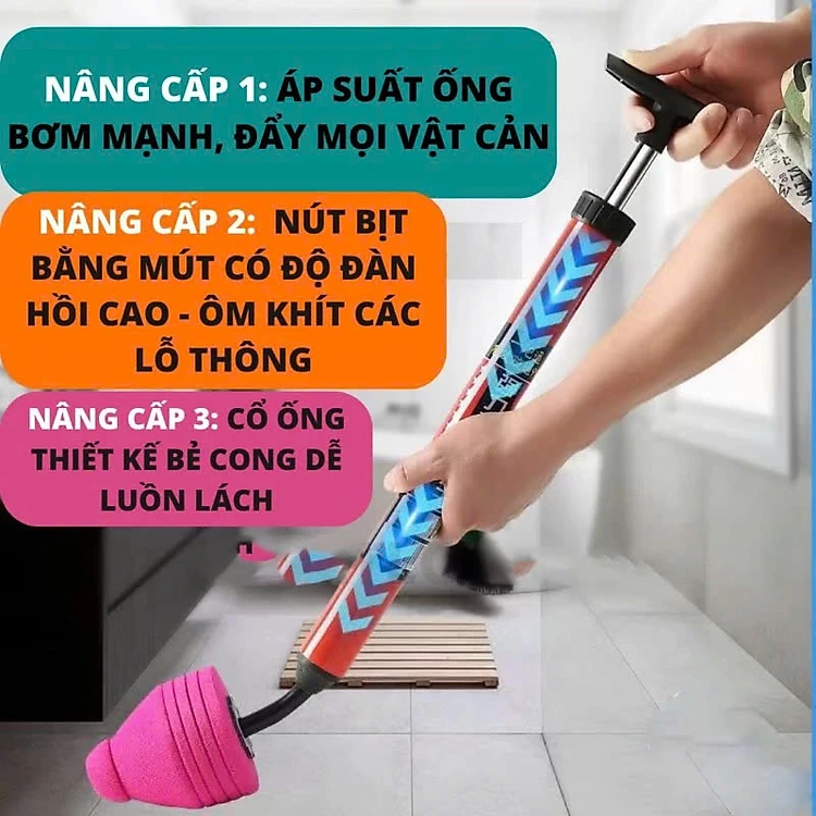 Dụng cụ thông tắc bồn cầu, cống bằng khi nén áp lực siêu mạnh