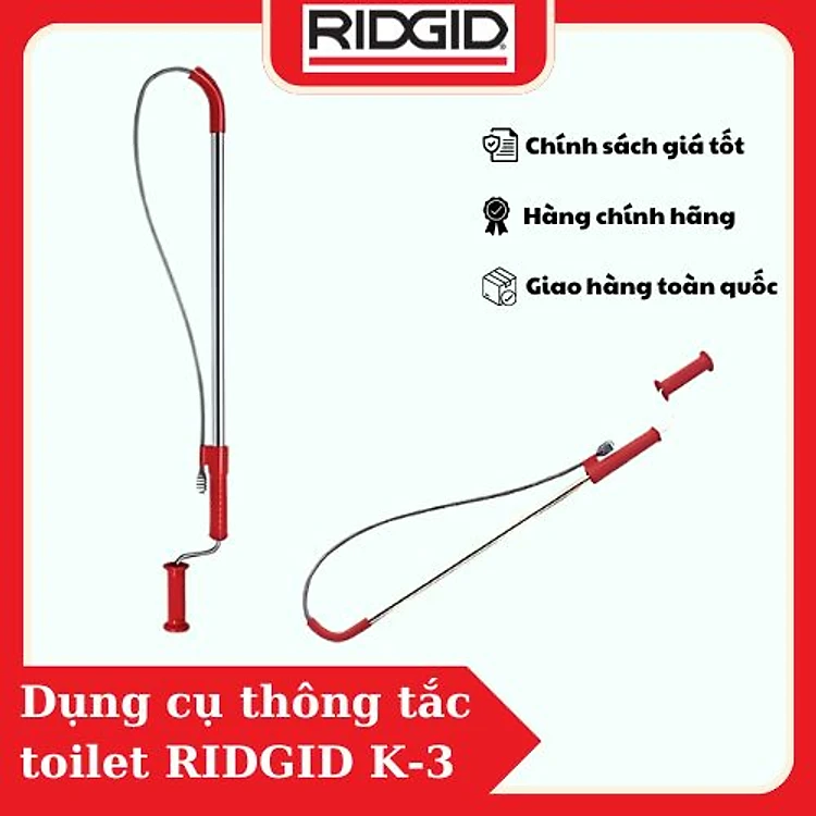 Dụng Cụ Thông Tắc TOILET RIDGID K3 (59787). Bộ Quay Tay Cáp Thép Lò Xo Đầu Có Móc SỐ 1 TẠI MỸ 2,5kg - Hàng chính hãng