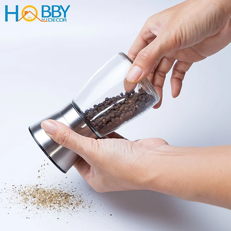 Lọ xay tiêu cầm tay nắp viền inox 304 lọ thủy tinh Hobby Home Decor XT mẫu thon cao và mẫu thấp tùy chọn