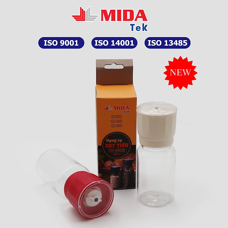 Dụng cụ xay tiêu MIDATEK cối xay ceramic Màu Đỏ chai nhựa dung tích 100ml miệng hũ 38mm
