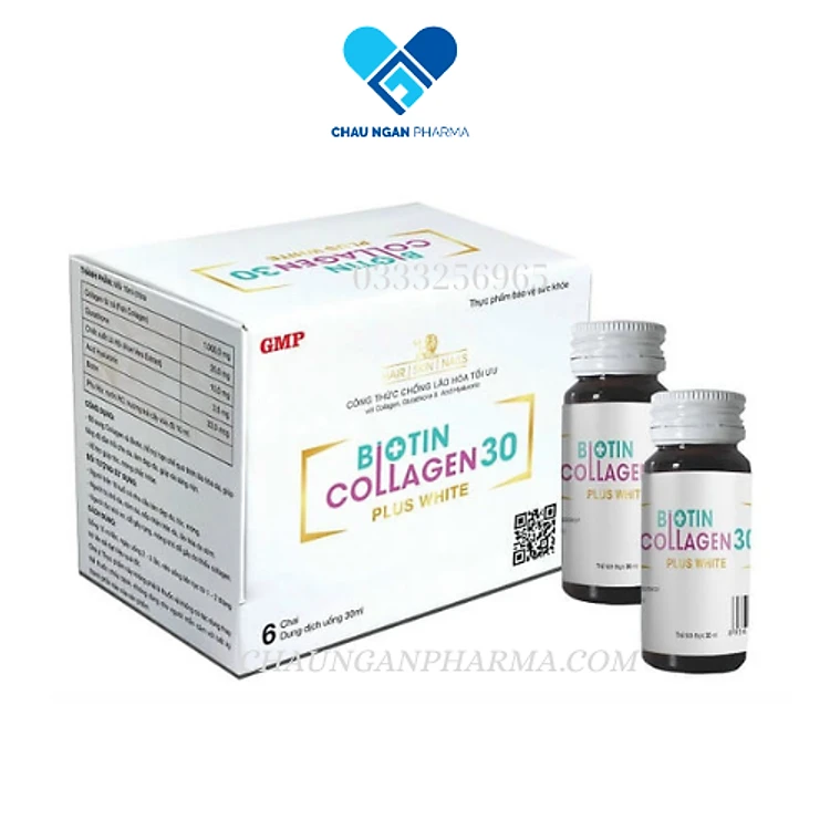 Dung dịch BIOTIN COLLAGEN 30 Plus White Mediphar Hộp 6 lọ 30ml - Bổ sung Collagen và Biotin, hỗ trợ hạn chế quá trình lão hóa da, giúp tăng độ đàn hồi cho da, làm đẹp da, giúp da sáng mịn