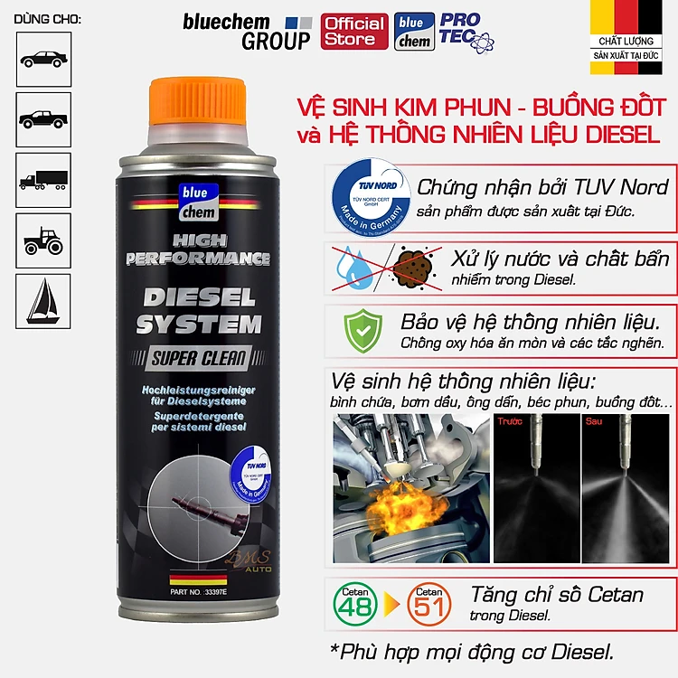 Dung dịch Bluechem Làm sạch Hệ thống nhiên liệu - Kim phun Động cơ Diesel hiện đại 350ml