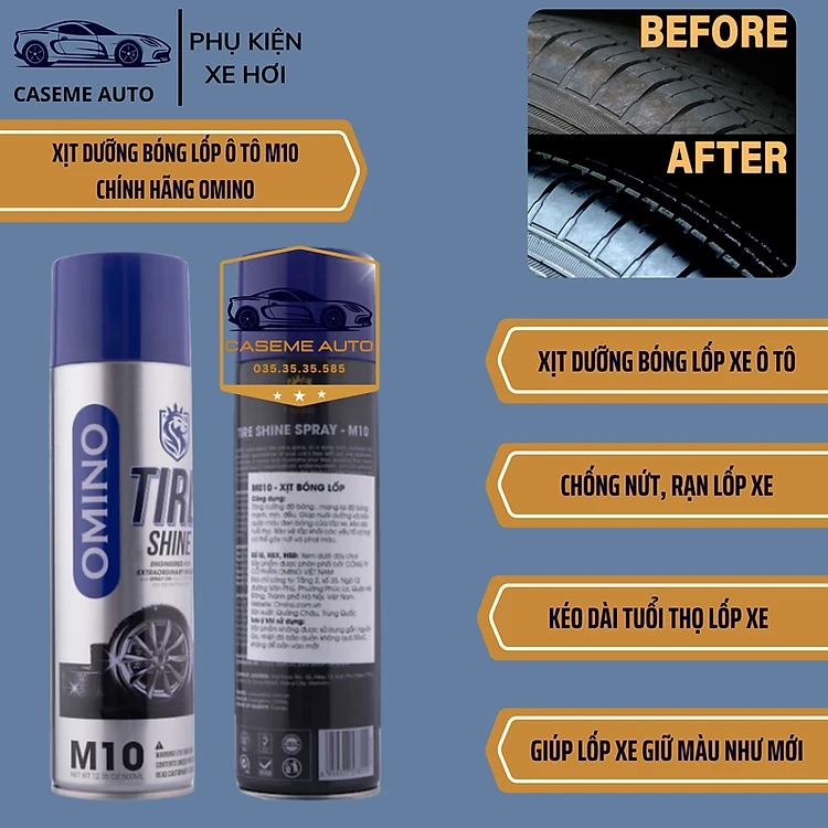 Dung Dịch Dưỡng Bóng Lốp Ô Tô OMINO M10 500ml, Phục Hồi Nhựa Đen, Chống Bạc Màu, Làm Bóng Vỏ Xe – Hàng Chính Hãng