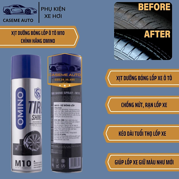 Dung Dịch Dưỡng Bóng Lốp Ô Tô OMINO M10 500ml, Phục Hồi Nhựa Đen, Chống Bạc Màu, Làm Bóng Vỏ Xe – Hàng Nhập Khẩu